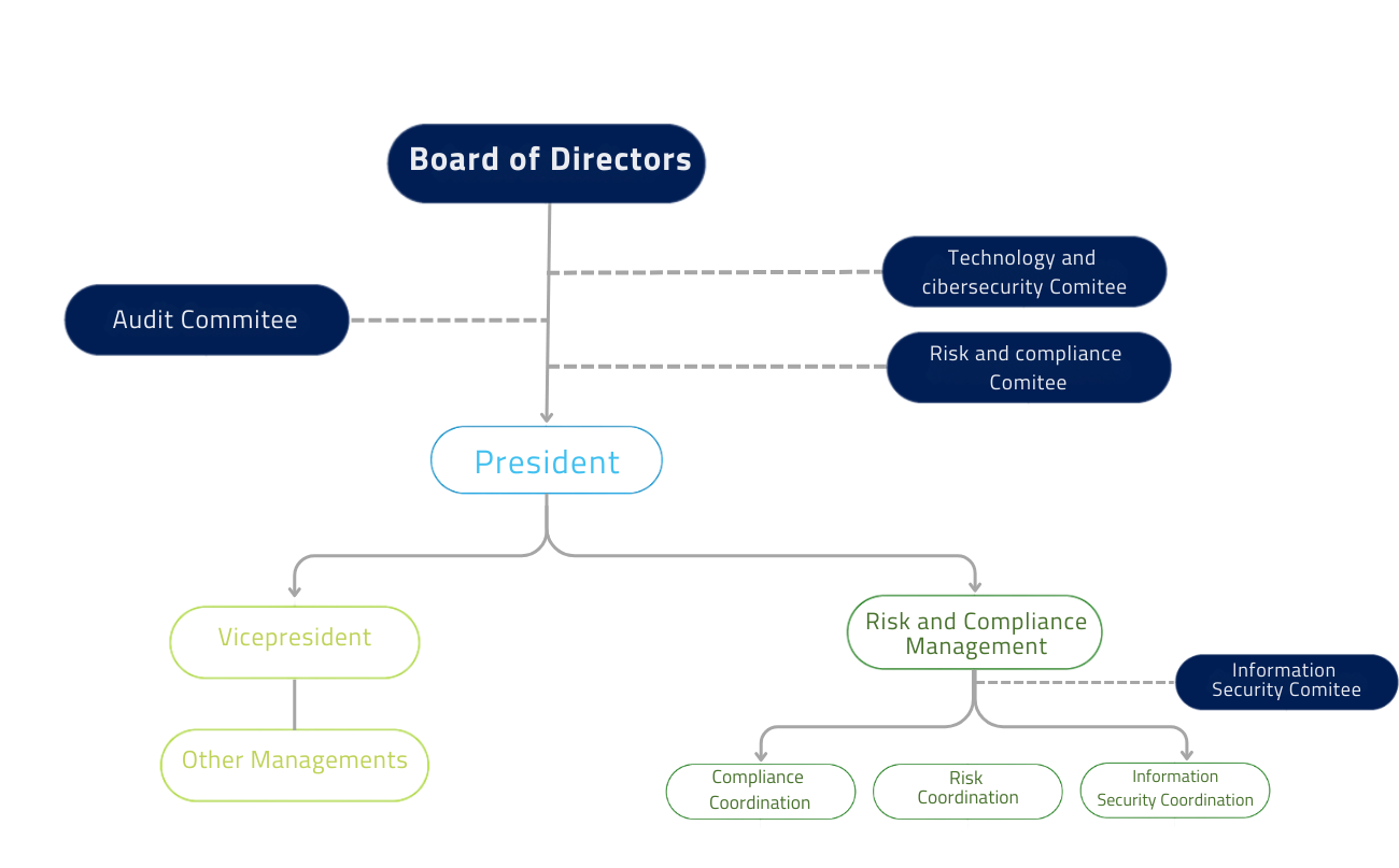At Promigas, after the President, the Risk and Compliance Manager has the highest seniority, and the responsibility for operational risk management. They report on risk management to the President of the Company and the Strategy, Governance and Risk Committee.